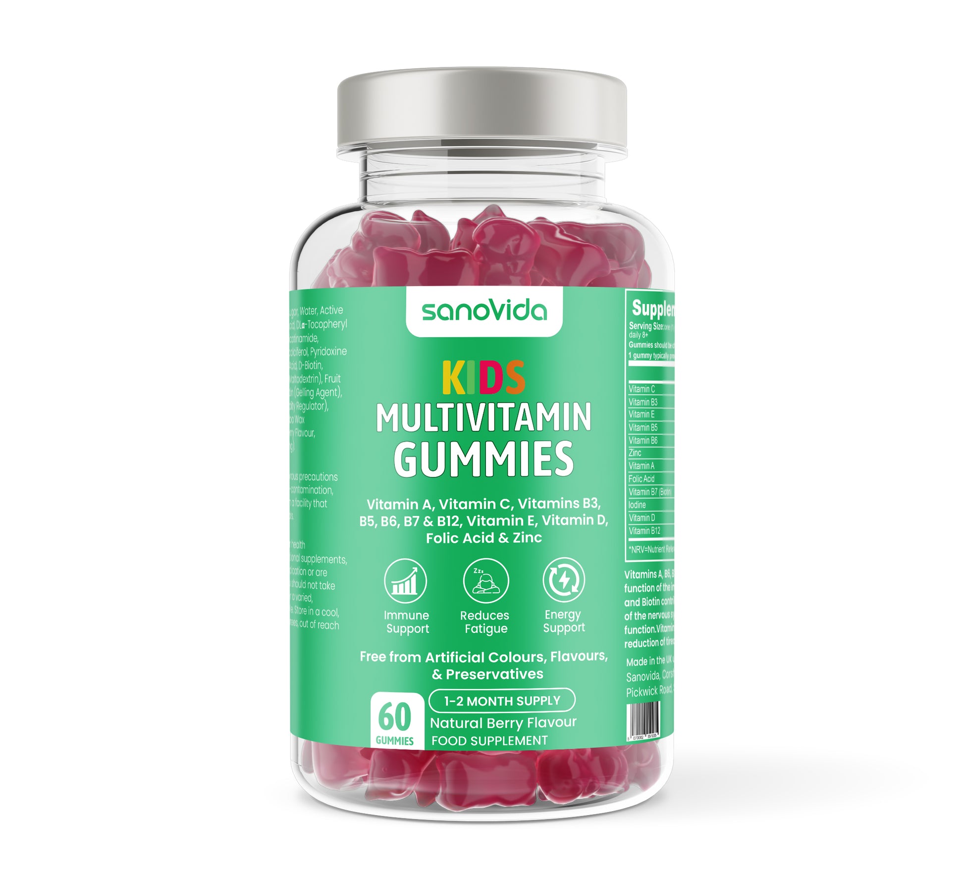 Kids Multivitamin & Mineral Berry Flavour Gummies - contains 12 essential vitamins and minerals, including vitamins A, C, D, E & B, as well as the minerals, iodine and zinc. This bottle contains 150 Gummies that will provide up to 5 months’ supply. These multivitamins for children are especially designed to provide young bodies and minds with the vitamins they need for optimal development. By promoting healthy growth and bone development while supporting the immune system, as well as supporting normal nervous and psychological function and reducing tiredness and fatigue. Perfect for kids who don't like taking tablets, these tasty gummies are a great way for children to take their multivitamins and minerals.